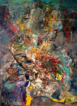 This approach inevitably led the artist to a clear commitment to abstract expression in her paintings. The largest and most complex organism that man has to deal with is the cosmos, which is in itself and in its essence abstract, as man himself is abstract in his inner body. The only real thing is the moment between these abstractions; painting appears there, a work of art in any form, as an archivist of those moments. Petronella discovers those moments in the perfection of the silences she records, then reveals them to us, in her paintings. Her paths to abstraction in painting - or from the abstraction of her silences to pictorial realities, as she puts it, ran through fragrant flower gardens. Underlined by soft colors and exaggerated sizes, the floral shapes cover the canvases. This expressive realization results in an exceptional coloristic enthusiasm.